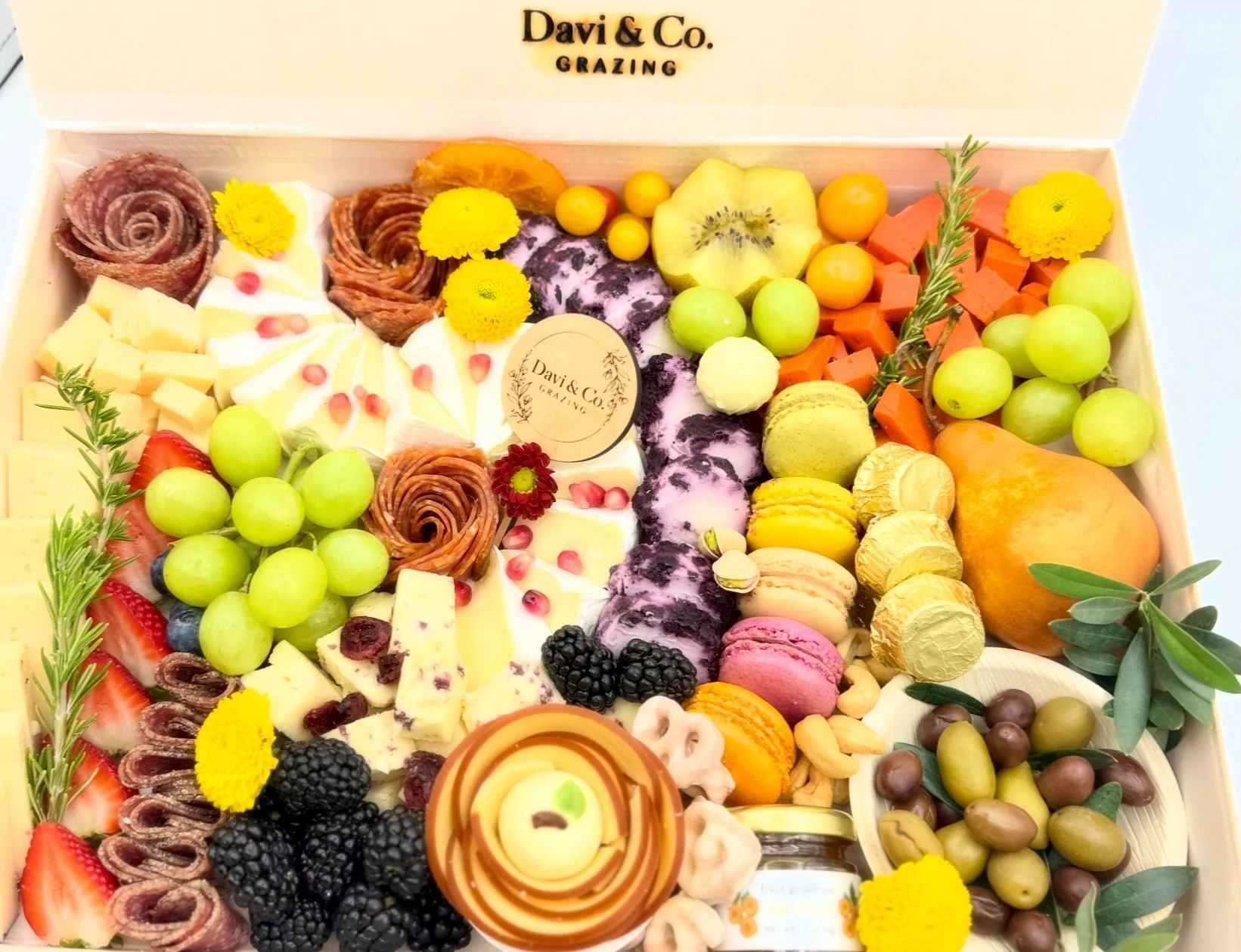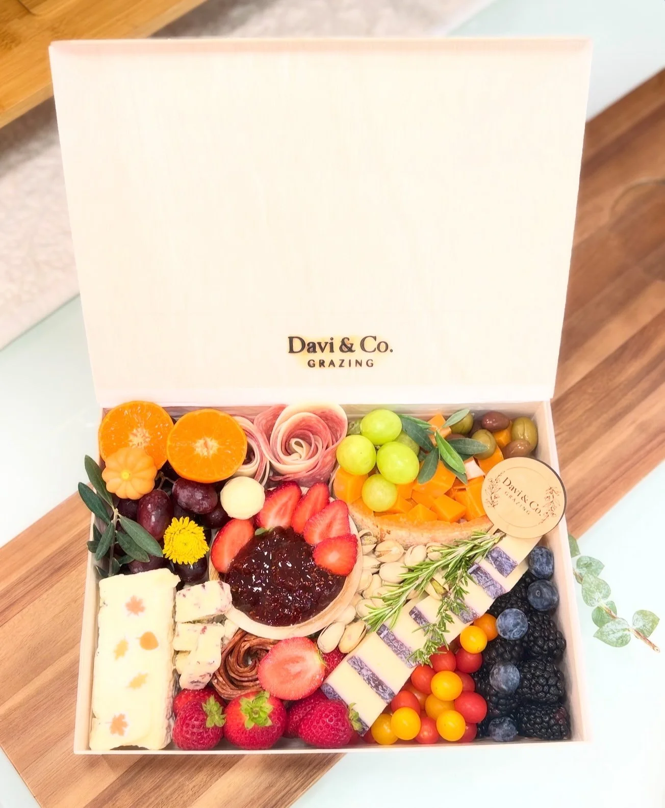 The LUXE Board — 19" x 14" $265.00 Crowd Pleaser — 16" x 16" $245.00 Socialite — 11" x 15" (balsa wood and rice paper) $125.00 Intimate Affair — 8" x 11" $65.00 Grab & Go Graze — 4" x 6" (balsa wood and rice paper) $24.00 Bottle of Wine from $40.00 Gift Certificate from $25.00